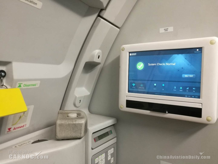 在飞行途中,一次起来上厕所的机会,看客舱墙壁上看到了一个屏幕,上面显示Wi-Fi信号和在线用户数,根据经验推断,这个应该就是Wi-Fi服务器了。我特地咨询了一下空姐,她亲切的介绍说所有飞机上的电影、音乐和游戏都存储在这个服务器里面,而且节目内容会每月更新。但目前这只是客舱局域网WIFI,还不支持上互联网,要安装了卫星的飞机才能支持。