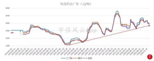 受国际氧化铝价格走强影响,国内氧化铝的价格在2016年初触底后也一路震荡上涨,目前3000元/吨的位置。