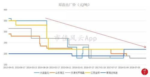 纯碱的主要成本为原盐和煤炭,原盐价格一般比较稳定,整体呈现下行趋势。