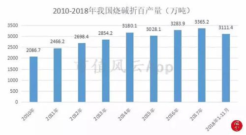 2017年全年中国氧化铝产量约6660万吨(中国产业信息网数据),照此简单计算需要烧碱500万吨左右;2018年1-11月我国氧化铝产量6627.8万吨,全年产量有望达到7200万吨。