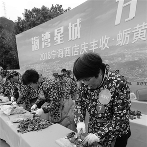 她们要在规定的15分钟内,比一比谁挖的蛎肉最多,最多的就摘得“蛎嫂”称号。不过,对吃货们来说,最吸引眼球的是其后上演的“蛎王争霸赛”,来自当地20多个村的蛎黄养殖户代表,拿出自家“宝贝”在天平上一较高下。