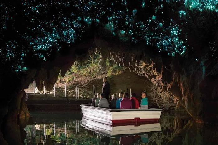 “我们在当地毛利导游的带领下,乘小船沿着地下河道进去观赏这些蓝色生物。导游让大家保持安静,于是在一点杂音都没有的地下洞穴里,船静悄悄沿着地下暗河前进,拐过一个弯就被眼前幽蓝的洞穴顶惊艳到了,”佐罗君说道。