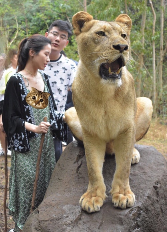 “进去要先签生死状,每人会拿到一根大木棍作“武器”,跟我们同行的是两只Baby Lion,但是体格一点也不baby,”Mia说道,“刚看到狮子的时候还是有点小紧张,不过全程都有四个饲养员陪同。”