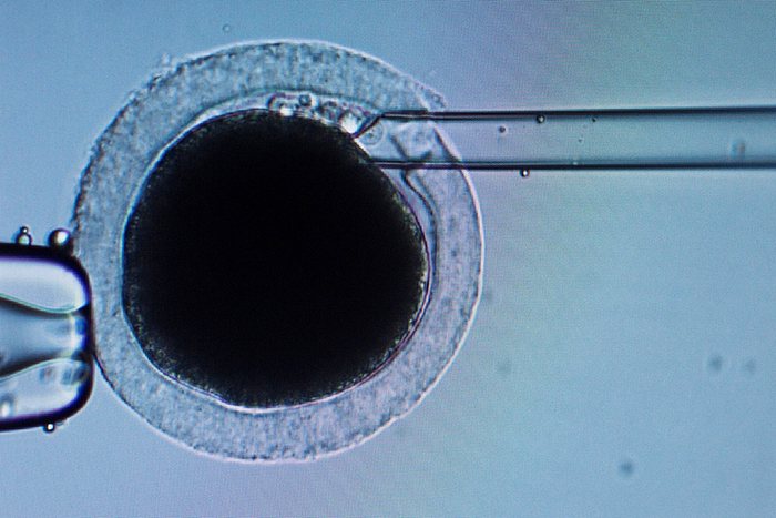 对狗的卵细胞进行受精的显微图像。