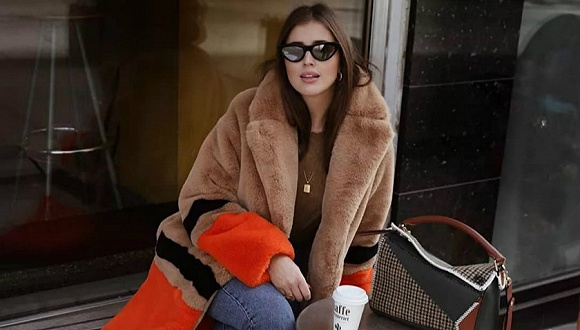 常见的棕色毛毛外套,在袖口和下摆拼上橘色,时髦了不少。丹麦品牌inwear这款,海淘网参考价:2125元。▼