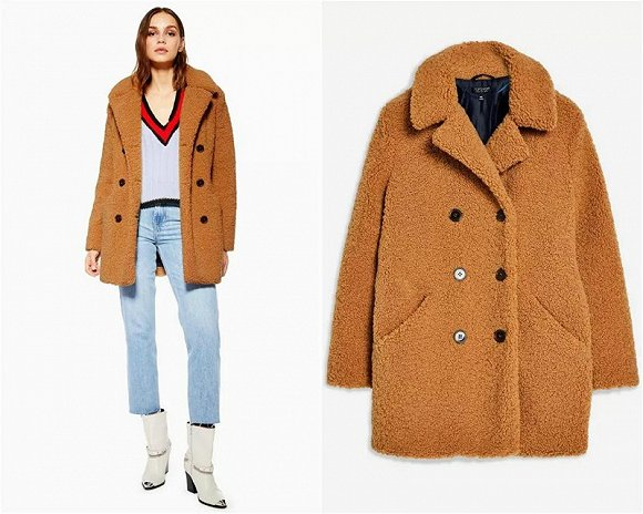 Topshop棕色毛毛外套,带一点温暖橘色调,官网参考价:589元。▼