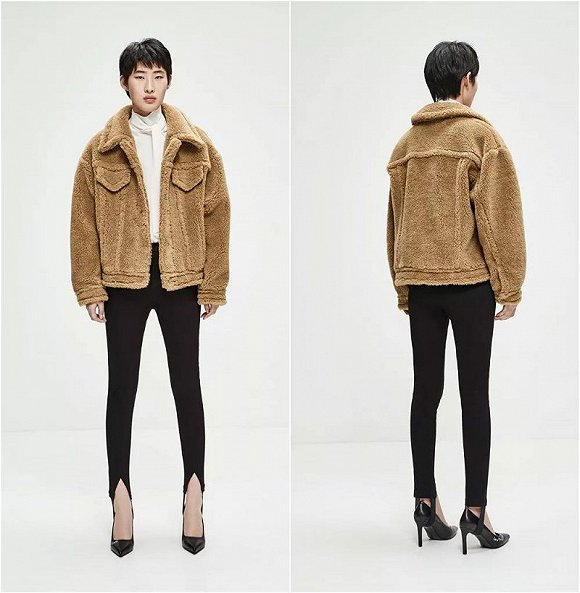 短款的请三思。这种传统样式的毛毛外套,穿上去显得很老气,而且毛毛都堆在上半身,胖乎乎。更适合纸片人,以及内搭要超轻薄,从保暖这个角度,实用性就差很多。▼