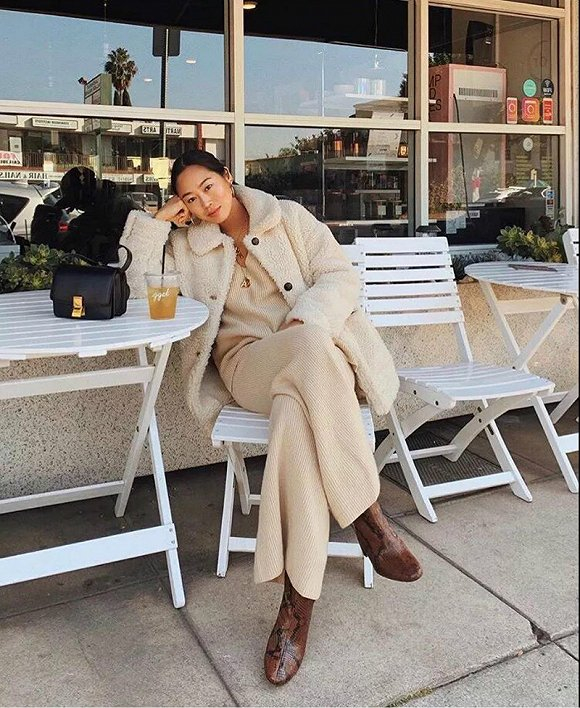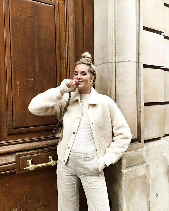这件毛毛外套来自英国品牌Ducie,他家很多人造皮草外套。内搭选紧身一点的,全身白造型在冬天很养眼。▼
