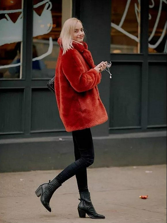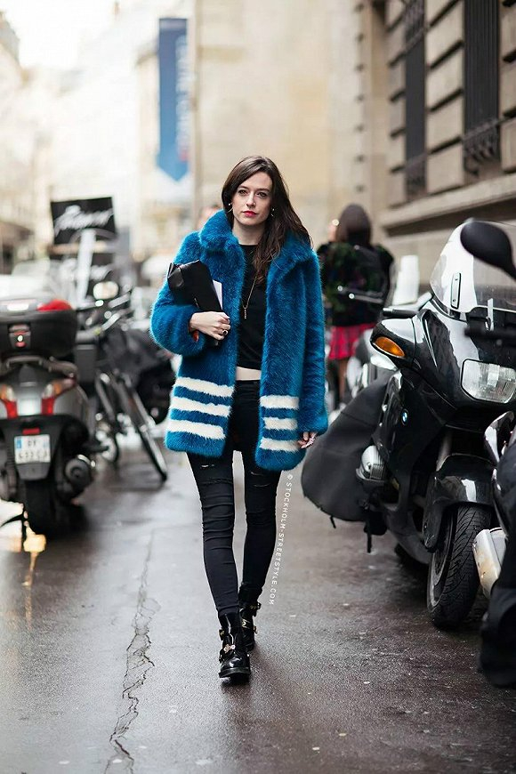 看了这么多图你们应该发现了,最常见也是最容易驾驭的毛毛外套是黑色和棕色。但如果担心穿得老气沉闷,不妨考虑彩色款。这两年出了各种彩色毛毛外套,很多都很好看,冬天穿也会很吸睛。