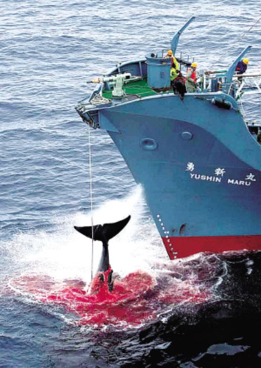 日本捕杀鲸类的方式极其残忍。