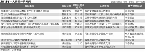 21世纪经济报道记者从2018年整个A股并购市场中,以重组规模、方案设计、创新性、重组后的经济与社会效果、对市场的借鉴意义等为标准,遴选出了2018年的十大明星并购案。