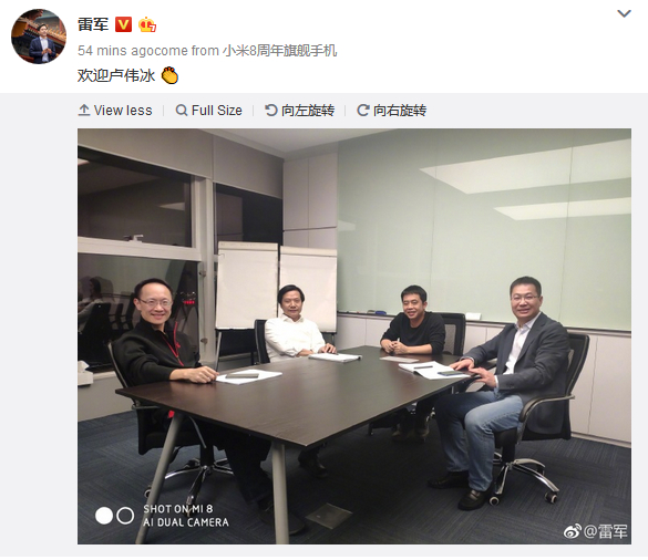 雷军微博官宣,原金立手机总裁卢伟冰加盟小米