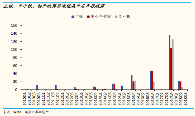 总的来看,在《会计监管风险提示第8号——商誉减值》强调对于收购标的业绩恶化特别是业绩承诺不达标公司商誉减值测试的情况下,以下三方面因素都表明2018年创业板可能存在较大的商誉减值风险:
