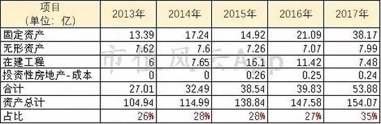 这些账面价值不断升值的项目,在资产的占比在逐渐提高,2017年达到54亿,目前,给天虹更多带来的是折旧、摊销等影响。