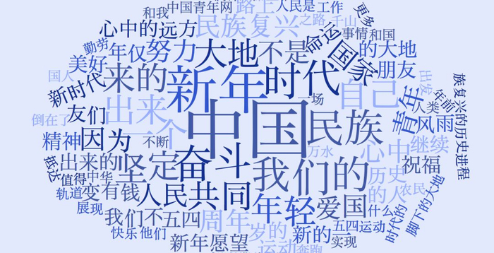 人民日报、新华社、央视新闻、中青网更侧重于国家层面,在文章基调方面更加鼓舞人心。其中中青网作为面向青年人的媒体,提到了五四运动的纪念意义。澎湃、南方周末、新京报更加关注个体,体察入微,具有人文关怀。澎湃在今年的新年献词中,通篇都以“春天”、“冬天”为喻,没有具体事件的叙述,以抒情为主。