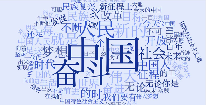 新华社的新年献词也大体上采用了“回顾与展望”的行文结构。开篇强调“奋斗的征程,只有进行时没有完成时”,随后回顾了2018年,中国在习近平同志为核心的党中央领导下取得的一系列成就。接下来着重强调了2019年新中国成立70周年,全面建成小康社会关键之年的重要意义。对“新征程”作出了一系列展望,并在文末再次突出“奋斗”的文章主题。