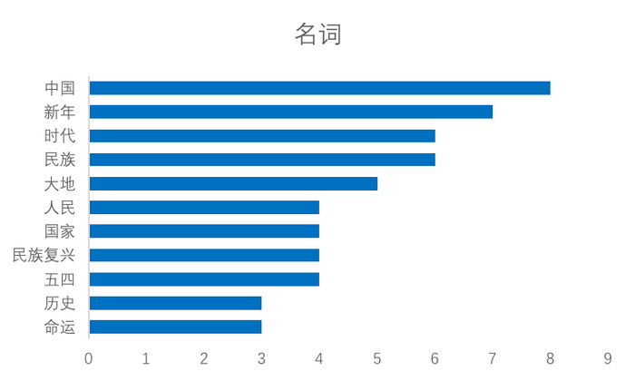 对于新年献词,媒体类型不同,献词内容自然也有不同,表达方式亦会不同。我们选取了七家媒体(人民日报、新华社、央视新闻、中青网、澎湃、南方周末、新京报)的2019年新年献词,通过词频分析的方式,探究了这些新年献词之间的异与同。并与上一年的探究结果进行了比较。