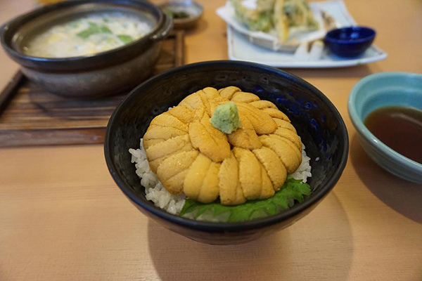 到了多少可以算得上热闹的函馆车站附近,终于感到自己身处城市。中午时分,车站旁边的函馆朝市正准备收市,多少有些冷清,还好著名的村上海胆店还开着。这家店专营海胆,除了海胆丼,和紫苏叶一起炸的海胆天妇罗,以及海胆杂炊都非常美味。海胆的新鲜程度堪比在兰屿海边直接捡来吃的生海胆,每一口都感觉异常珍贵。