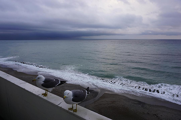 回到酒店房间里,发现两只海鸥兄弟站在窗台上。我开窗它们也没走,表情严肃地思考着什么。我还是第一次这么近距离的看海鸥。两人都健壮丰满,羽毛光亮,真是漂亮的鸟儿。窗外的海面上,海鸥的叫声不绝于耳。