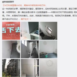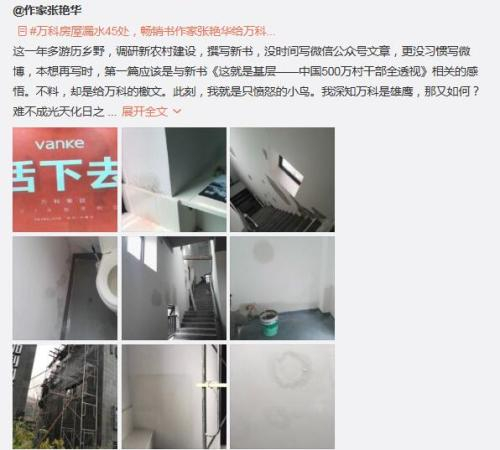 作家致信郁亮称房子45处漏水 万科:已诉诸法律途径