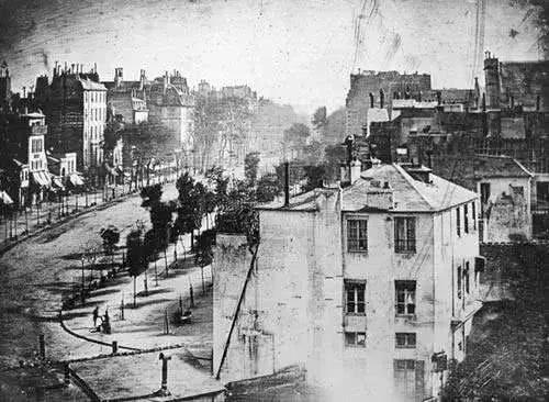 这是经过修复的照片,原来的照片根本看不出细节尼埃普斯曝光了足足 8 个小时才获得了这张照片。为了改进曝光成像时间,他找到了舞美设计师达盖尔。两人一起合作改进技术,最终于 1839 年发布了达盖尔摄影术。这是人类历史上摄影技术真正的开端。