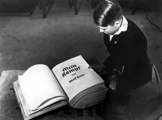 1938年,一个年轻的德国男孩在读《我的奋斗》,图:Keystone-France/Gamma-Keystone via Getty Images