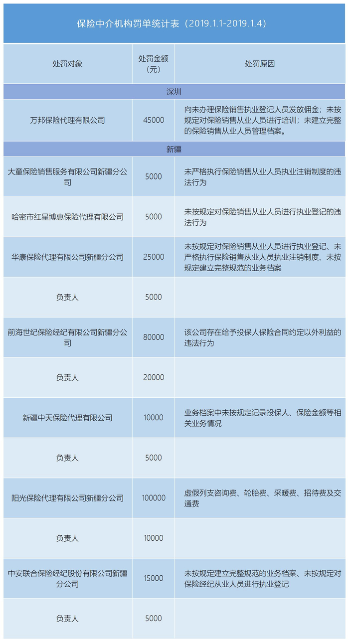 据《国际金融报》记者统计,除了上述这张罚单外,3个工作日内,银保监会官网还先后公开披露了北京、湖南、湖北、新疆、深圳等地银保监局罚单共32份,涉及金额约225万元,保险中介机构成此次监管的重点。
