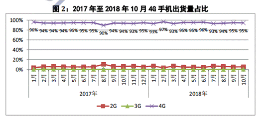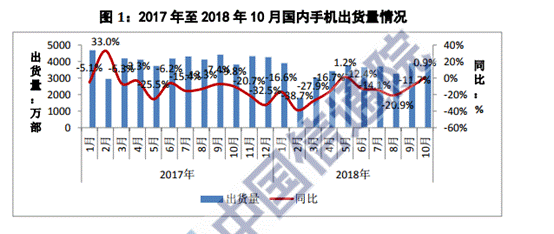 日前,信通院权威发布十月国内手机市场总体出货量,10月,国内手机市场出货量3853.3万部,同比增长0.9%,环比下降1.3%; 2018年1-10月,国内手机市场出货量3.43亿部,同比下降15.3%。大环境压力导致手机整体环境依旧处于劣势。2018年1-10月,2G手机出货量1877.6万部,同比下降19.1%;3G手机出货量15.0万部,同比下降72.3%;4G手机出货量3.24亿部,同比下降15.0%。