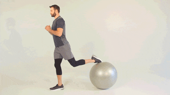 2.有控制地下蹲,直到后支撑腿的膝盖接触毛巾或垫子,始终稳定核心肌群,身体挺直。