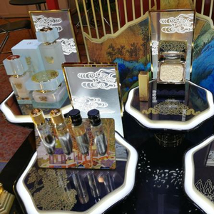 郎智公司这次在香港国际授权展上,带来了与华珍藏羌文化博物馆合作的刺绣图案授权产品案例:藏羌刺绣图案被用在了植村秀的包装之上。