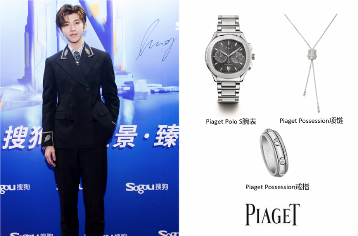 蔡徐坤佩戴Piaget Polos S腕表与Possession珠宝出席活动。精钢腕表搭配刺绣西装,诠释独树一帜的时尚品味;白金钻石戒指及项链点缀装扮,释放潮流新生的耀眼光芒。