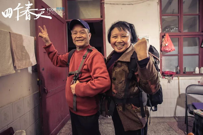 《四个春天》则前所未有地讲出了一对充满活力的父母。两位老人的丰富精神世界、充满文艺气质的个人品位和积极开放的心态,才是让这个家庭始终充满和谐气氛的经线与纬线。电影里,两位老人的口头禅是“哉哟”、“安逸”和“好玩”。菜地里的蒲公英结出毛球,他们吹完两枝后恋恋不舍,说“明天还要再来玩”。两位老人对新鲜事物永远满怀热情:年轻时爱DV摄像,会十几种乐器,唱歌跳舞样样在行,老了也还在鼓捣着剪辑视频、学习用淘宝购物、被微信语音逗得哈哈大笑。当然,他们对于新鲜事物的高度接受不仅出自个人的性情,也离不开孩子对父母的耐心。哥哥耐心地为父母讲解制作视频的步骤,作为导演的弟弟更有着为父母拍纪录片的宝贵心意。
