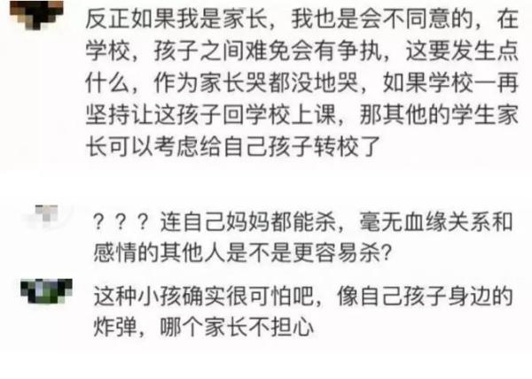 在网络上,该事件也引发公众的关注和讨论。不少网友认为,连自己母亲都能狠心杀害的人,如果跟同学发生争执,谁能确保他不会伤害同学?