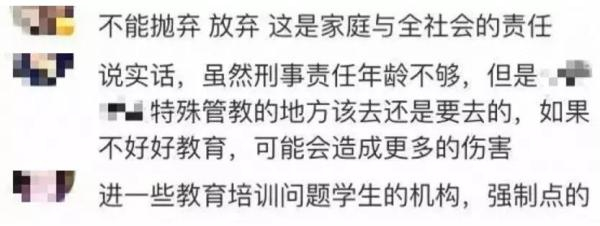 也有网友指出:“不能放弃(教育吴某),这是家庭和全社会的责任”。还有网友建议:“去特殊管教的地方或一些教育问题孩子的机构”。