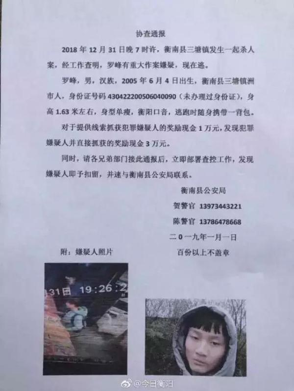 警方随后悬赏3万元征集抓捕线索,1月2日,逃逸的凶手被抓获。