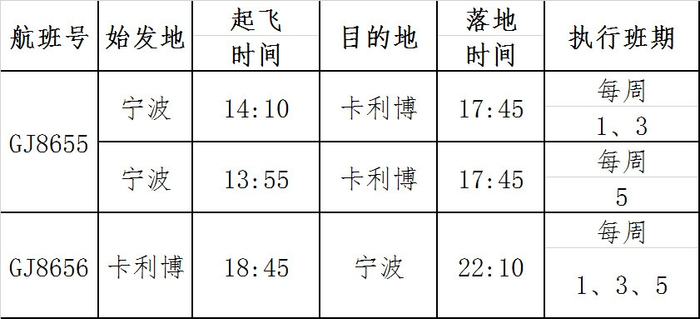 长龙航空新开宁波=卡利博直飞航线