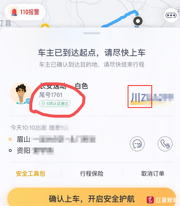 同时,乘客也可通过平台报警,平台有相应的措施对接警方,保证乘客安全。