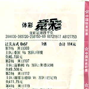 从中奖票上可见,他投注了数场奖金极高的冷门选项:亚洲杯首轮比赛中,泰国队1:4惨败印度着实让广大球迷大吃一惊,却被小赵准确猜中。另外,英格兰足总杯谢菲尔德联VS巴尼特“负”,赔率高达11.75;纽波特郡VS莱切斯特联“胜”,赔率达11.00,仅是这两场比赛就使得整体奖金大幅提升。比赛一一结束,他最终顺利过关,命中全部6场比赛的结果,虽然没有倍投,奖金依然非常可观的突破100万。