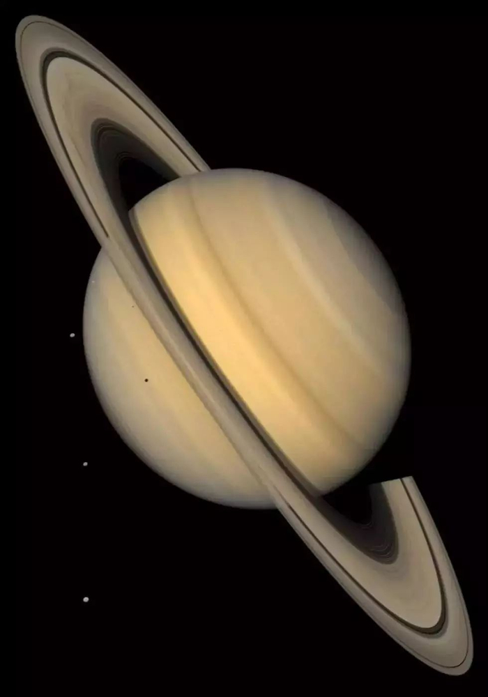 1981年8月, 旅行者2号拍下土星和它的4个卫星: 土卫三、土卫四、土卫五和土卫一。