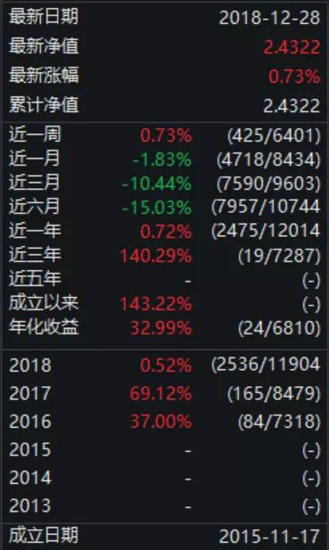 2018年,冯柳管理的高毅邻山1号基金,走过了三个完整年度。Wind数据显示,从2015年11月17日成立算起,截至2018年底总回报超过140%,年化收益率超过30%。