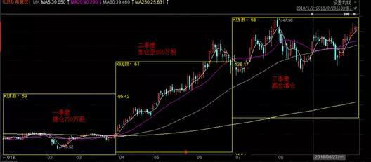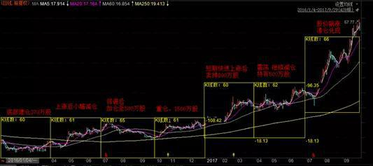2016年一季度至2017年三季度,冯柳买入卖出某白酒股,获得不菲投资收益,从下图可以清晰看出冯柳是如何买入卖出的,具体来感受一下。