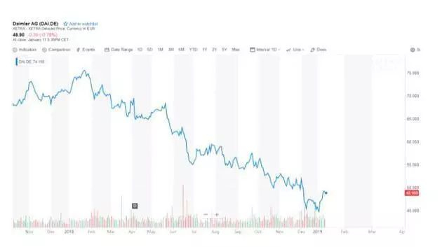 不过,戴姆勒跌跌不休的股价引起了市场对此事的强烈关注。今年以来,因公司盈利不佳,公司股价从去年2月份的70欧元高位,一路下跌至最近的48欧元附近。