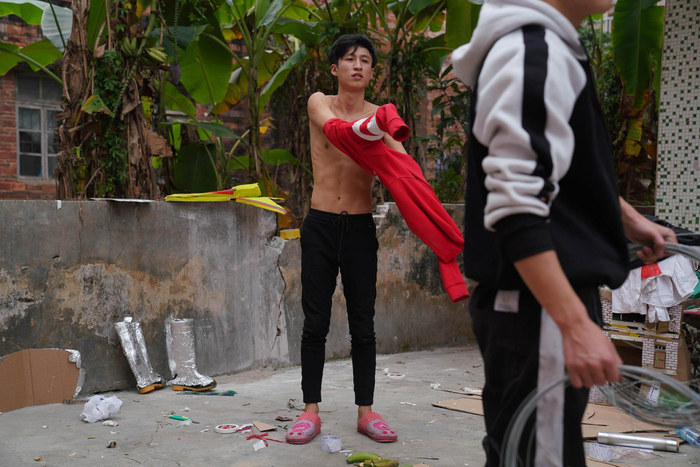 经过差不多5个小时的紧张制作后,整个服装和道具基本完成。蒋欢让小智拍摄个样片给他看,期间又修改了四五遍的小细节,蒋欢才算满意。在团队中,蒋欢是核心,最有创意和想法,被大家称为大哥。关键时候拿不定主意都靠蒋欢定,但争吵也会很正常的事情。