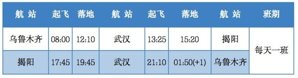 图:1月21日起,乌鲁木齐航空将开通乌鲁木齐=武汉=揭阳航线