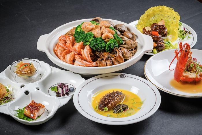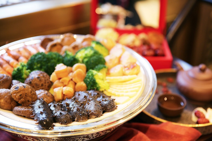 上海半岛酒店逸龙阁(预订电话 21-23276742)为前来享用年夜饭及新春大餐的客人准备了源自香港和中国南方地区的传统年菜。其中包括以关东辽参、澳洲干鲍、蚝豉王等高级食材的“盆满钵满”和“福临满堂”两种不同的盆菜,还可自选另加云南黑松露。“鱼生捞起”,是用新鲜美味的鱼生制作的开胃凉菜,在鱼生端上桌时,所有宾客需要一同捞起鱼生,这本是南洋华人的新年传统,近年也在大陆地区的餐厅流行起来。