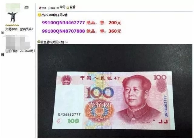 百元大钞叫价6888元?!特殊号码人民币和纪念钞一样值钱!