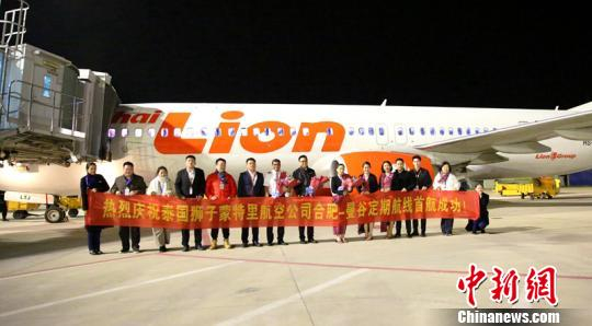 15日晚,泰国狮子蒙特里航空合肥至曼谷定期航班在合肥新桥国际机场完成首航。 合肥机场供图 摄