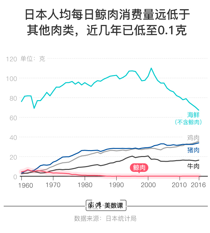 日本人并不怎么热爱鲸鱼肉,消费量连年走低