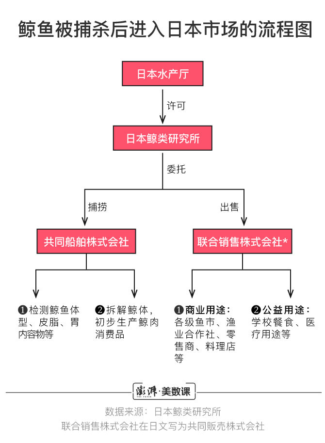 以科研名义被捕杀的鲸鱼,最后被输送到日本国内,满足人们的口腹之欲。负责执行这一系列动作的是一个名为日本鲸类研究所的机构,其上属机构是日本水产厅。