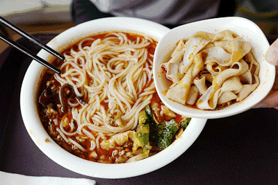 佐料是小面的灵魂,"干熘"(拌面)、"提黄"(偏生硬)、"加青"(多加蔬菜)、"重辣"(多加油辣子)的私人定制是对食客最大的诚意,更有"细面"、"韭菜叶"、"宽面"三种面身供人选择。